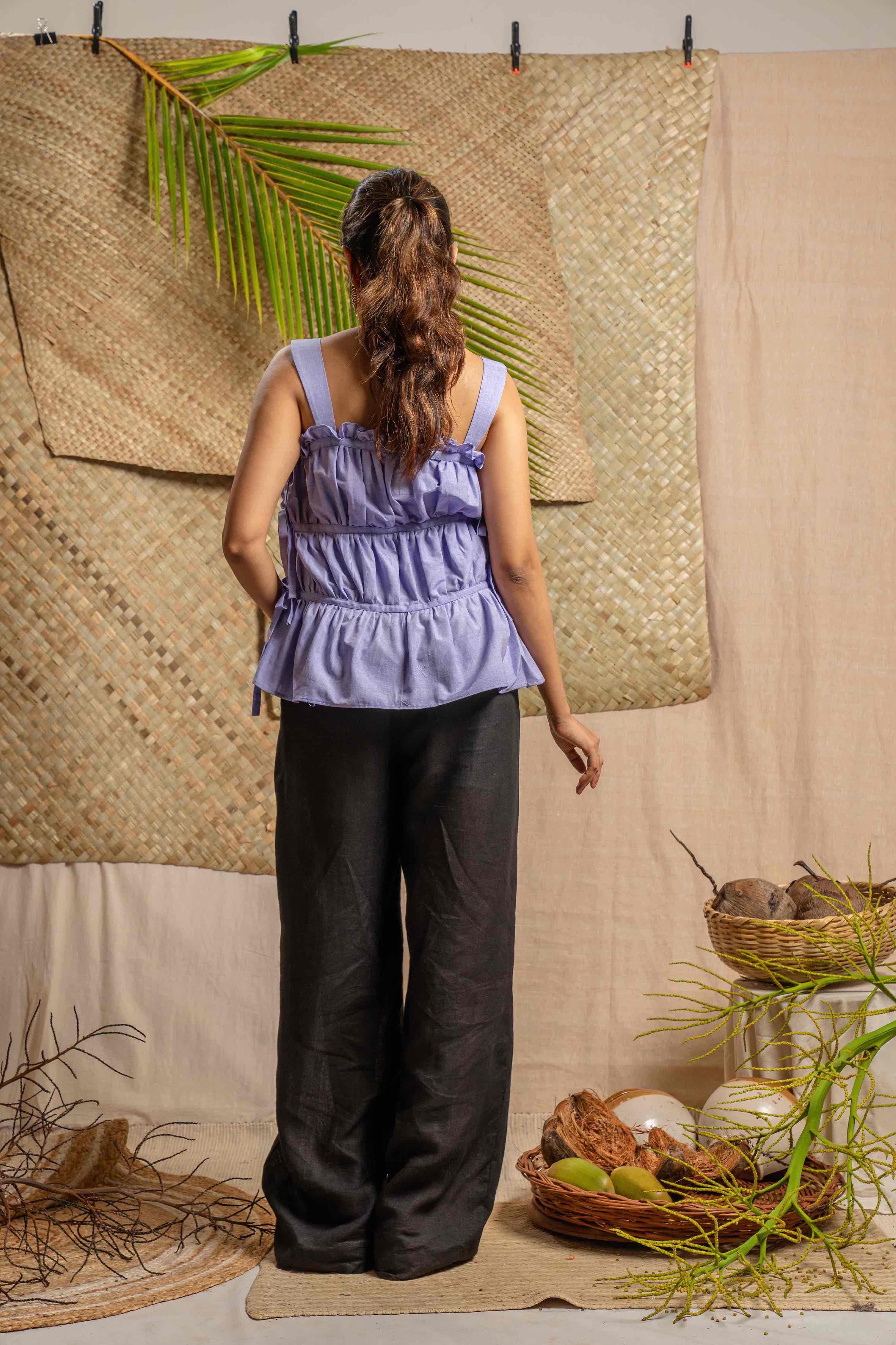 Bloom in style with our lavender gathered top, featuring adjustable tie details at bust and waist